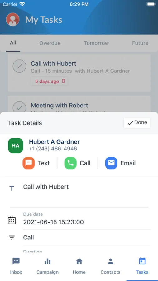 an application containing contact management, tasks management , campaign , call, sms, email etc.