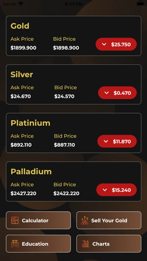 -Live Spot Prices of Gold, Silver, Platinum, and Palladium
