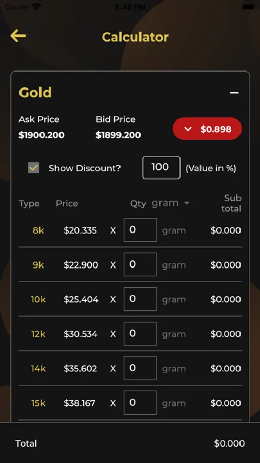 -Calculate the value of any precious metal