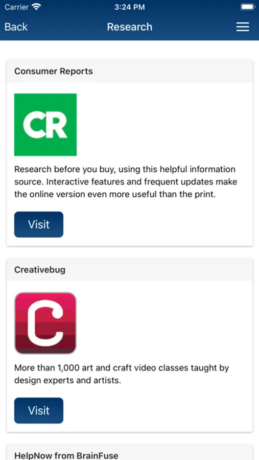 •Quick access to eLibrary apps and online research databases