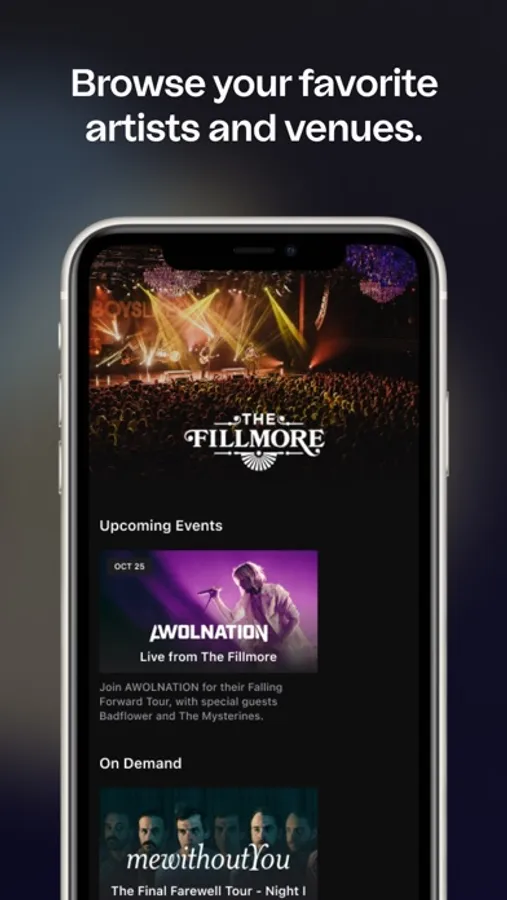 Veeps is a streaming service that offers access to premium livestream and on-demand concerts and events.