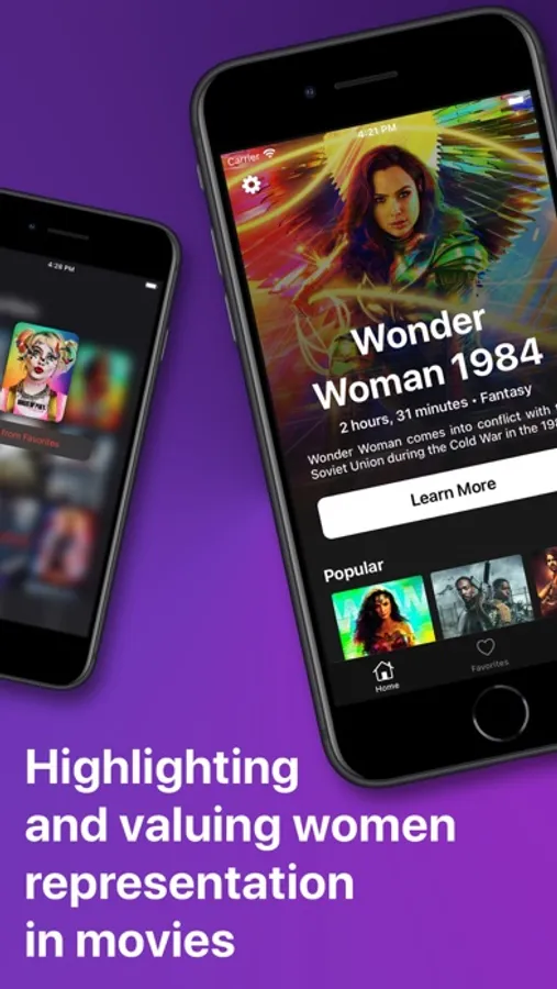 With Eyes, you can see movies trending on your region for you to reflect on, evaluate and indicate the ones that represent women both in casting and scripting. With Eyes installed on your iPhone, you have access to all these features at any moment: