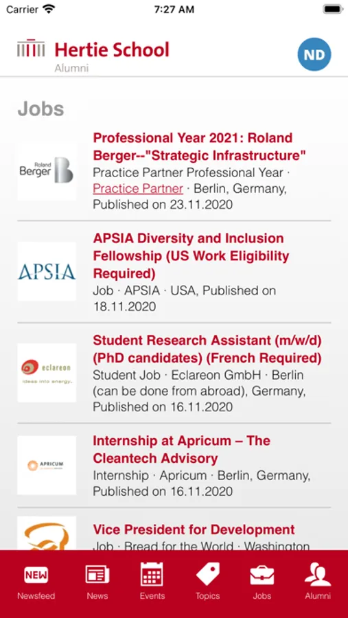 Join the Hertie School Alumni community, an ever-expanding global network of professionals from over 50 countries! With this app, you can connect with Alumni in your city, sector or area of interest, stay in touch with your local Alumni Chapter, read interesting job posts and receive invitations to exclusive events as well as updates from the Hertie School.