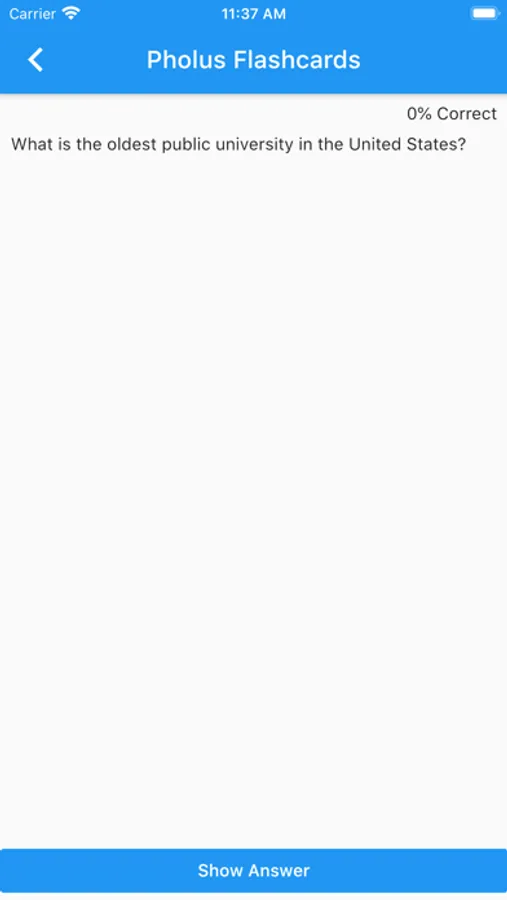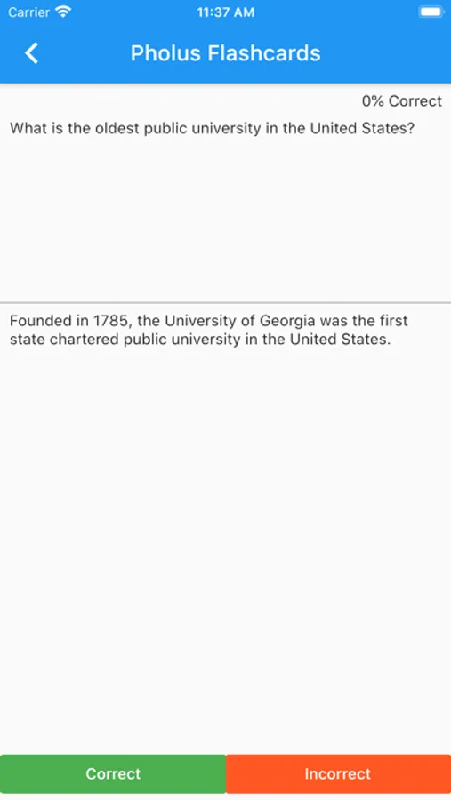 Unlike most flashcard apps, once you answer a question correctly, it stops asking you that question. You don't wast time on what you already know. You only study the info you don't know.