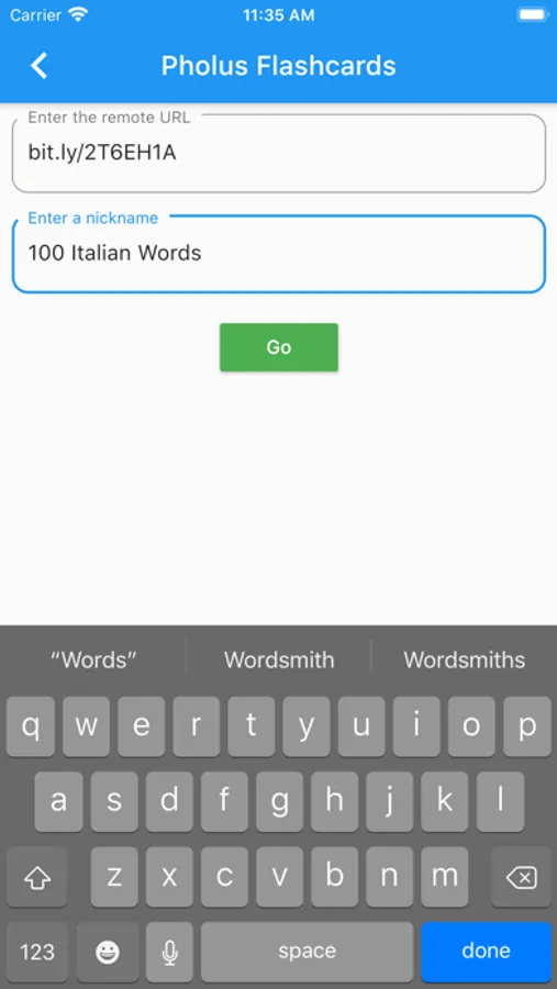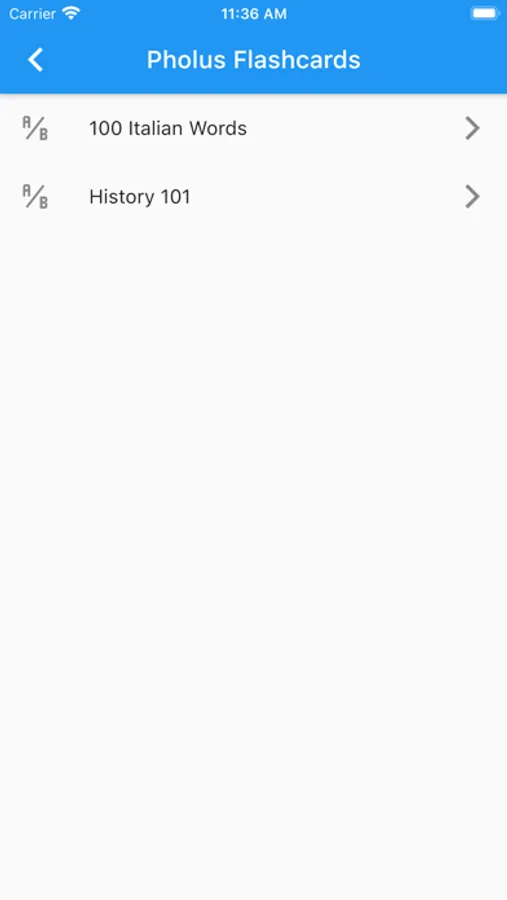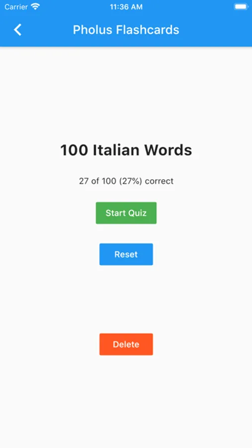 Use the above link to load a sample flashcard deck: 100 Italian Words.