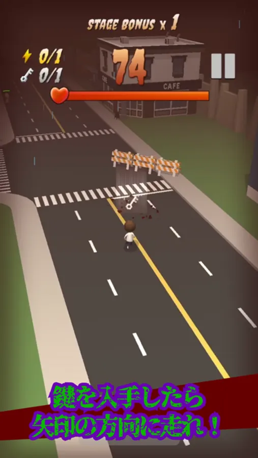 When you hit zombies and obstacles, your HP will decrease.