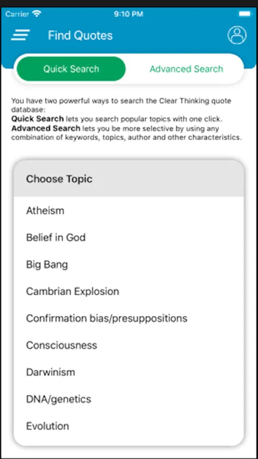 The ClearThinking app gives you instant access to a highly searchable database of the best quotes from 1500 experts at the intersection of science/faith/philosophy. There are over 10,000 quotes available to you on over 800 topics including science, philosophy, evolution, faith, logic, atheism, skepticism, intelligent design, origin of life, God, truth, DNA, Christianity, fine tuning, Darwinism, big bang, naturalism, morality, materialism, epigenetics, problem of evil, survival of the fittest, genetics, humanism, information, logical fallacies, theology, biases, racism, consciousness, rationality, science education, and religion.