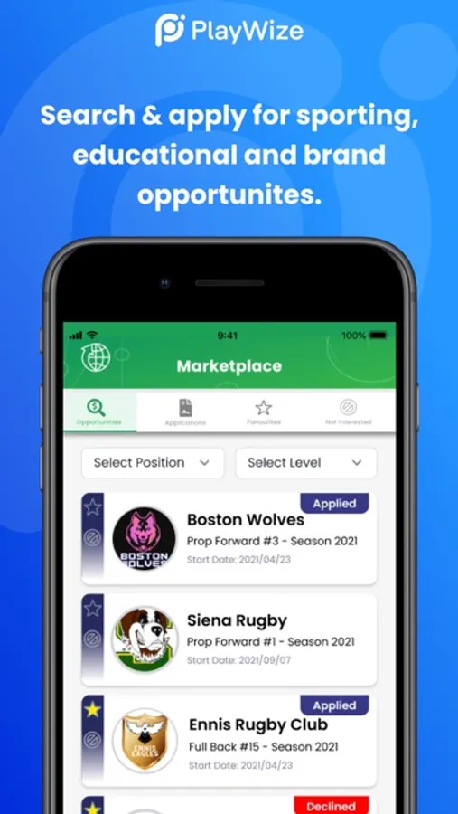 With PlayWize Athlete you can create your profile for free, adding highlights videos, agent details, social media and more. You can then apply for sporting, educational and brand opportunities all over the world.