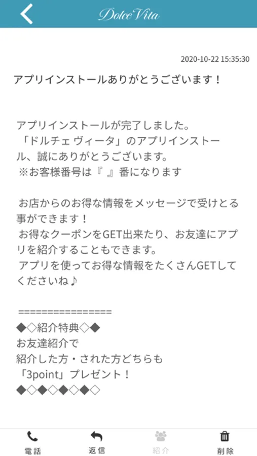Dolce VitaのアプリをSNSを通じてお友達に紹介する事ができます。