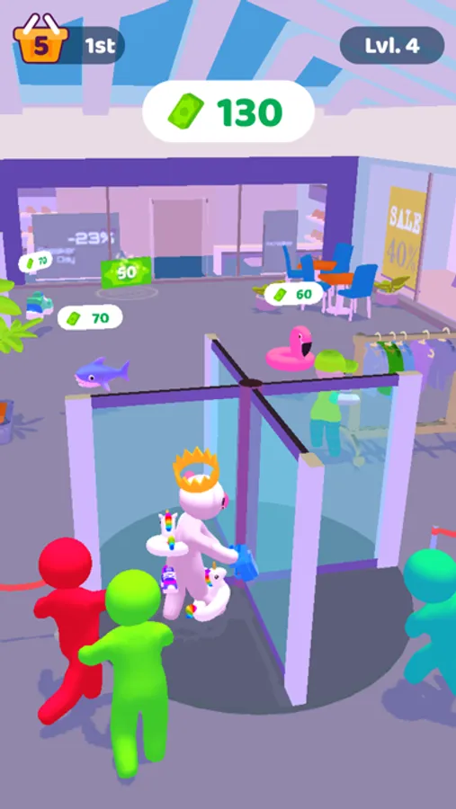 This mall is filled with those amazing goods and a bunch of cash to buy them! Collect money to buy everything you can for the lowest price imaginable. But of course, there is a catch! You aren’t the only one wishing for a good deal, so you better run fast to get the best offers in the shop. There is a bunch of stuff, but don’t forget to be careful - there will be various obstacles on your way!