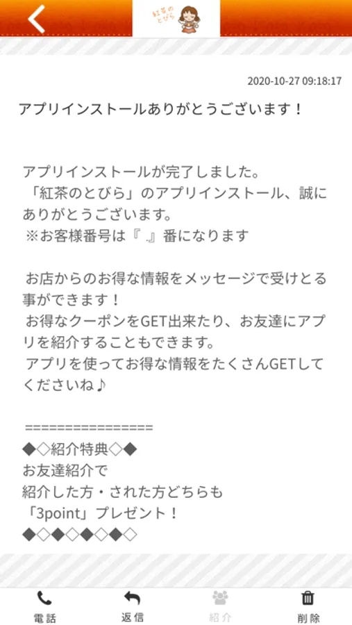 紅茶のとびらのアプリをSNSを通じてお友達に紹介する事ができます。