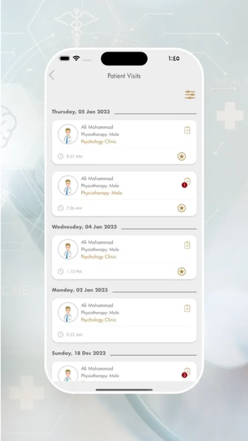 - View previous visits.