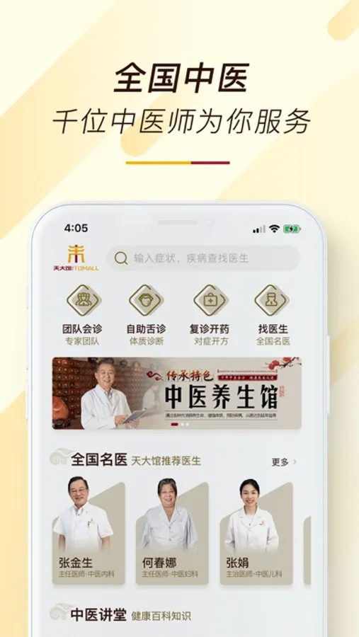 汇集全国各地的国医大师,随身预约、即时在线图文、视频问诊;简化看病流程,节约就医时间,随时随地咨询专业医师