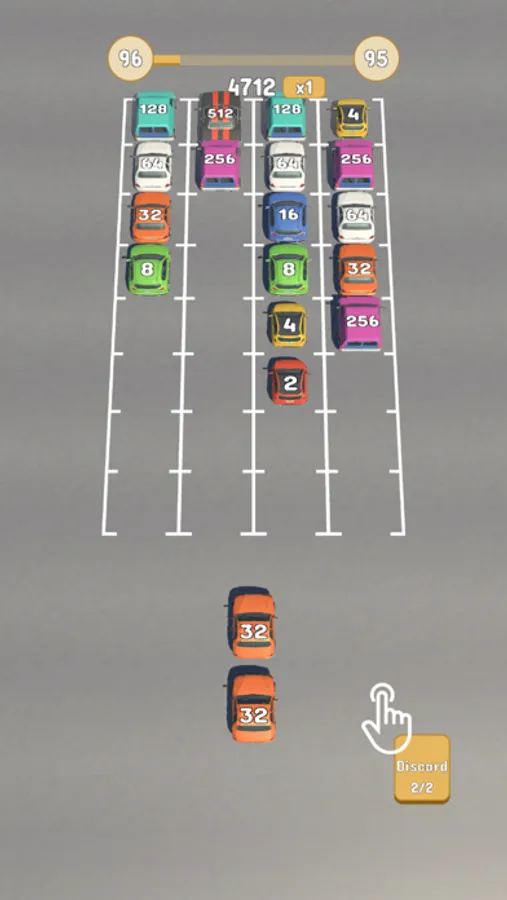 Park cars in a right order. One that are from the same value will merge, how far can you go?