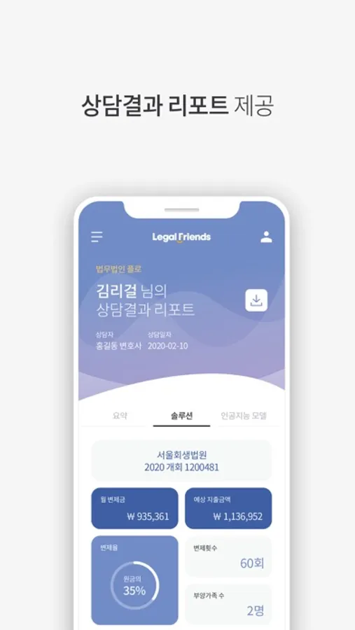 만 여건에 달하는 사건 데이터를 학습한 인공지능이 변제금을 예측,