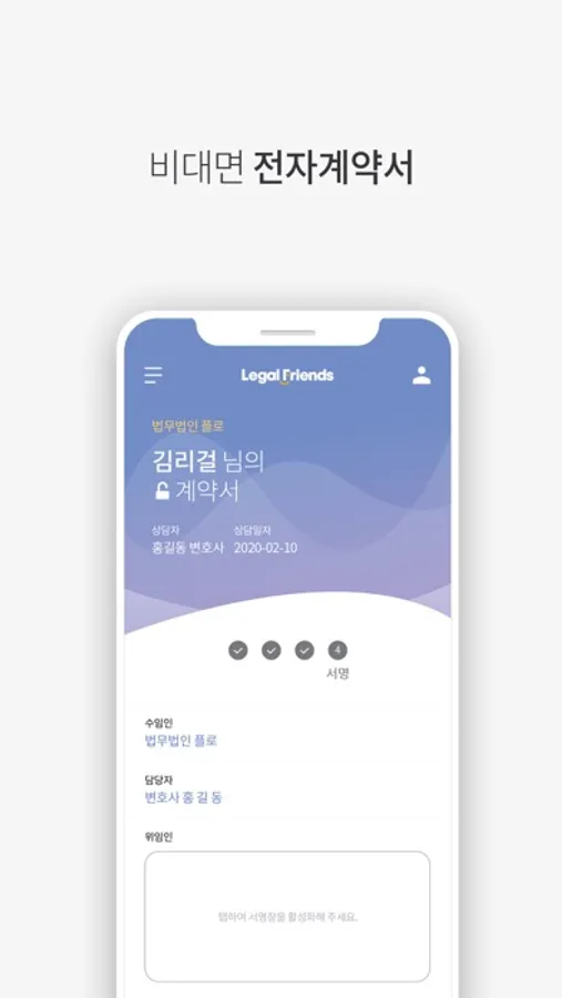 전자서명을 지원하는 모바일 앱만 있으면 계약 체결 완료!
