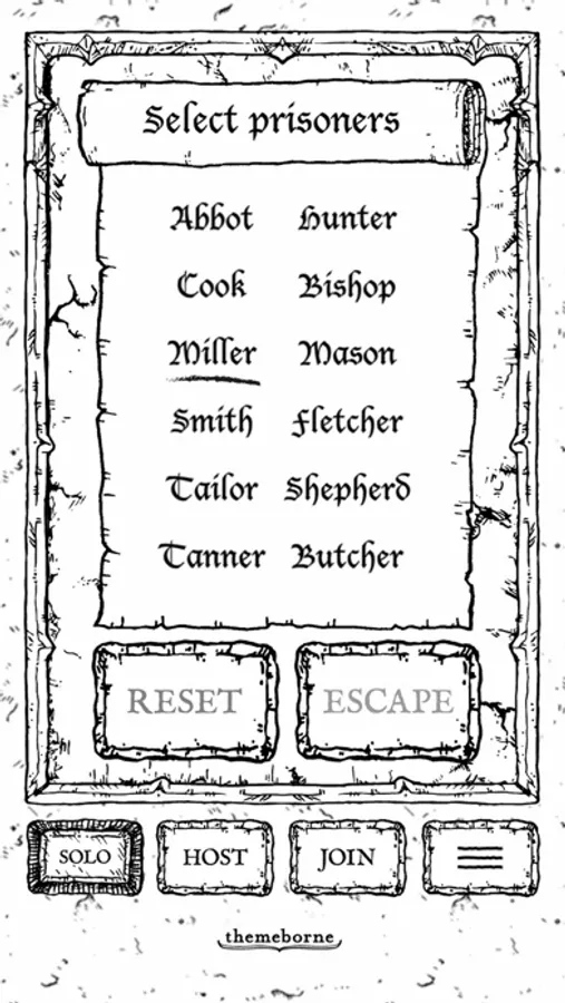 You can play a 2-prisoner solo game on one smartphone, or Host a game which up to three other players can Join using their own devices. During hosted games, all player’s prisoner names and HP levels are displayed in real time on each device, and you will phase in and out of game states together as a group for maximum atmospheric connectivity.