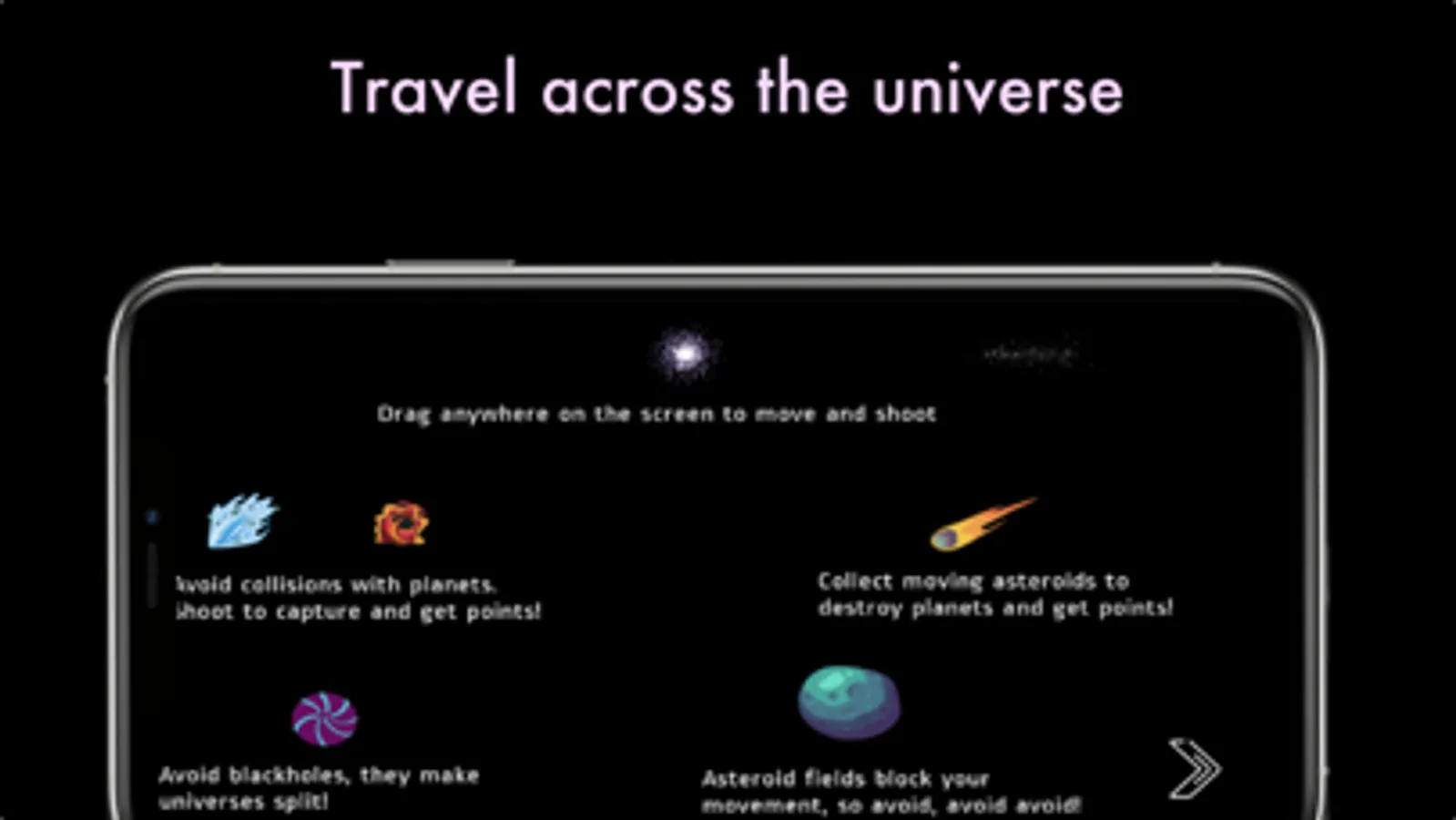 Destroy planets, avoid blackholes, asteroid fields to survive and travel across your universe.