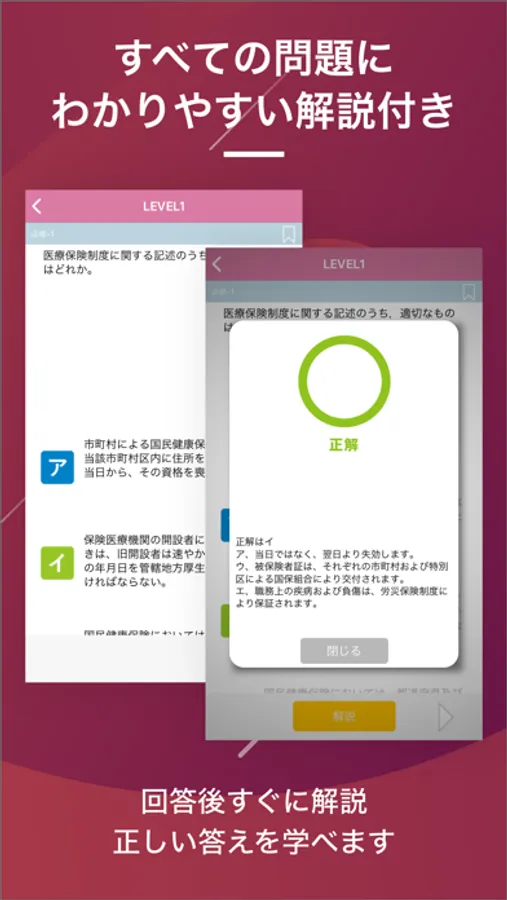 解説も充実し、アプリならではの隙間時間も逃さず効率的に勉強!これで次回試験もバッチリです!