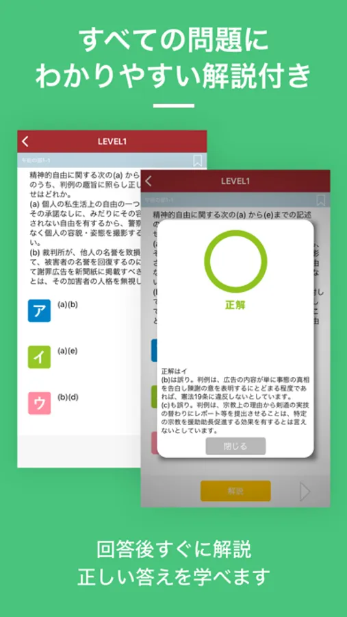解説も充実し、アプリならではの隙間時間も逃さず効率的に勉強!これで次回試験もバッチリです!