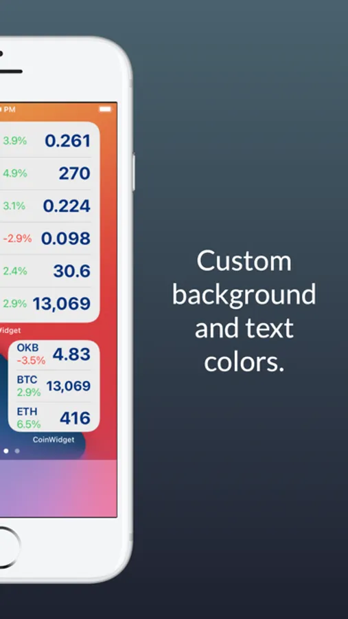 - Depending on the widget, can show price, 1d chart / change % / volume, market cap