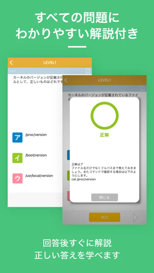 解説も充実し、アプリならではの隙間時間も逃さず効率的に勉強!これで次回試験もバッチリです!
