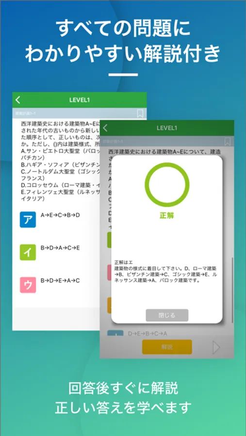 解説も充実し、アプリならではの隙間時間も逃さず効率的に勉強!これで次回試験もバッチリです!