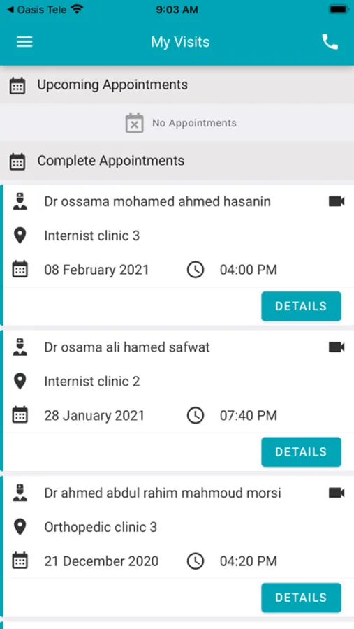 The patient can view upcoming scheduled clinic appointments, endoscopic services, physiotherapy sessions, laboratory tests, refill medications and scheduled hypnosis in chronological order.