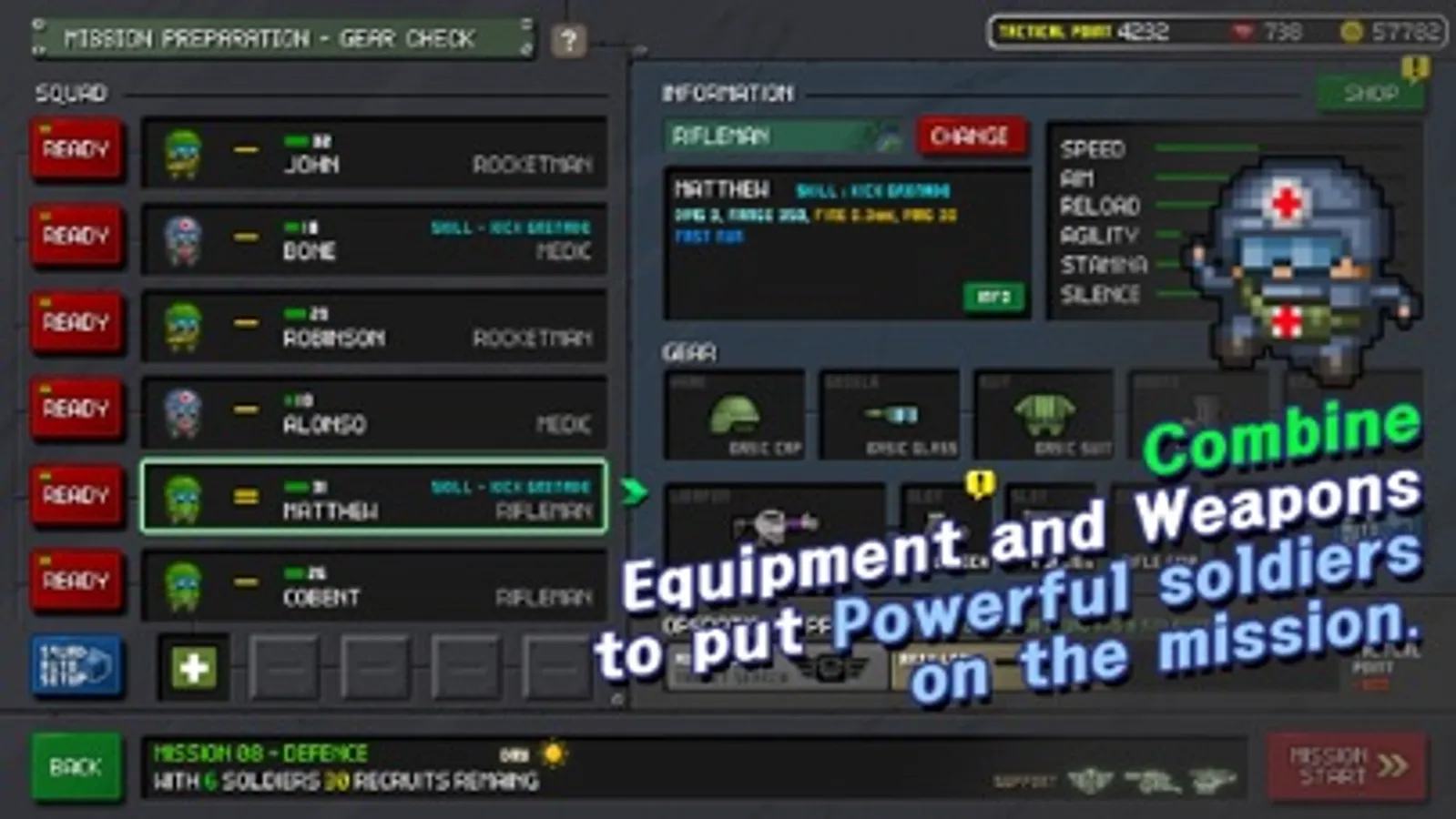 Various play using 6 classes consisting of Rifleman,Rocketman,Sniper,Medic,Specialist,Sapper.