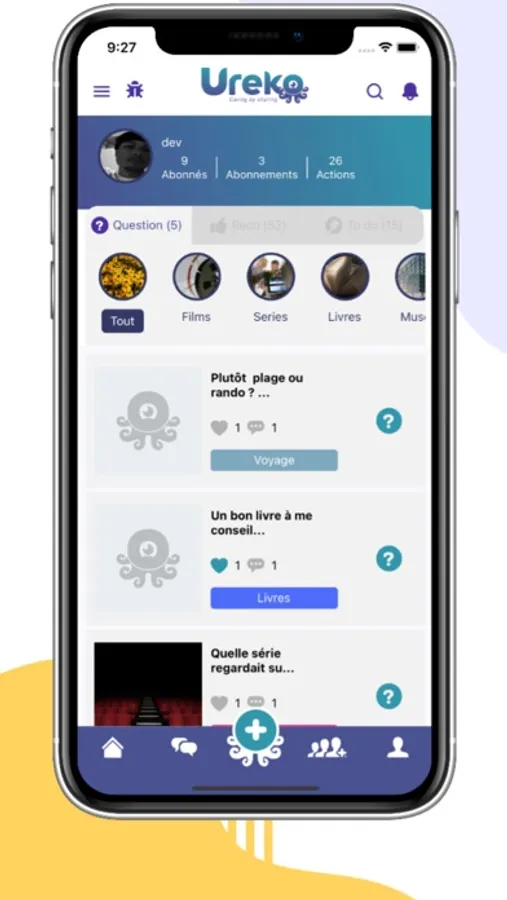 Avec Ureko, trouvez des recommendations dans + de 30 catégories : Film, séries, livres, restos, ballade, Recettes, DYI, mode, deco, le choix est sans limite.