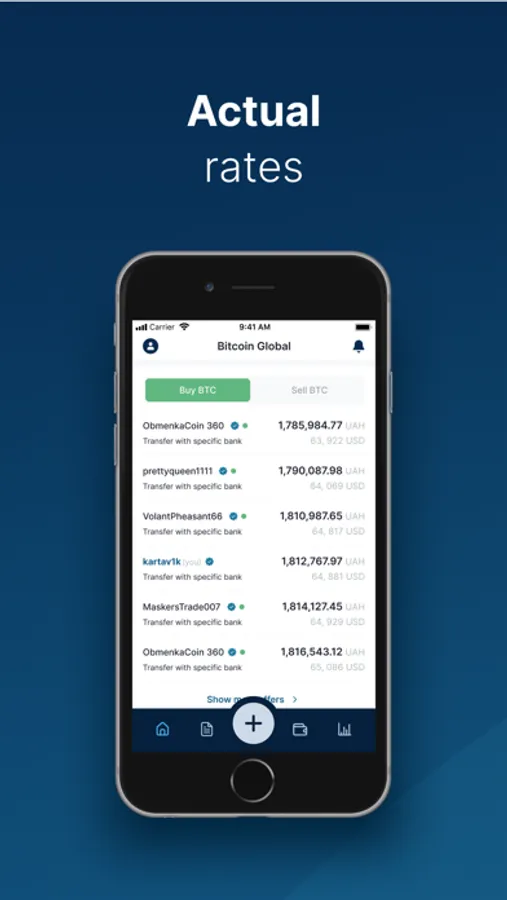 50+ payment methods are waiting for you, for example, you can buy crypto with a credit card or even cash. Choose a fiat currency that is convenient for you, and buy bitcoin, ethereum and other available coins for it. The trading process is very simple: you just need to select an ad and write to the trader. Thanks to push notifications, you won’t miss a single message.