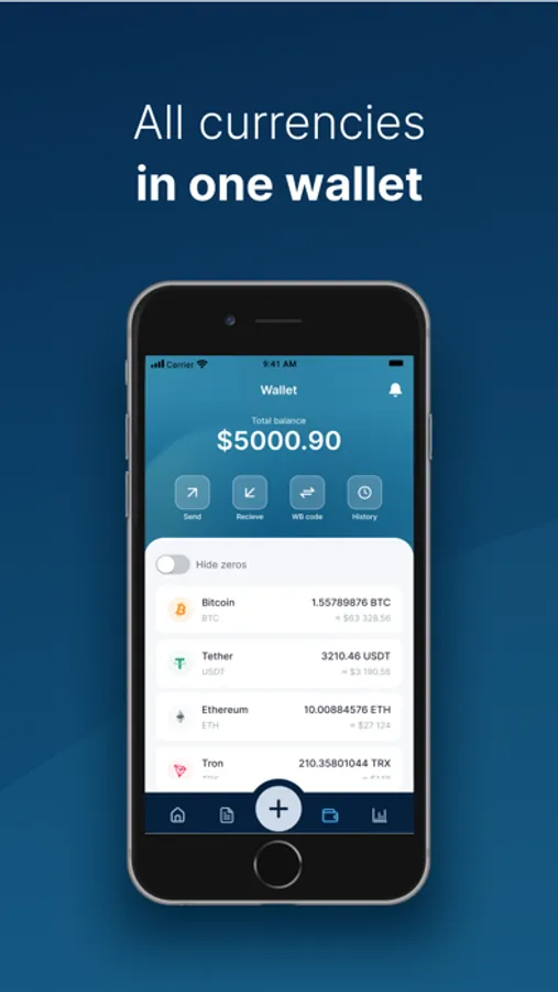 The application contains the codes of the WhiteBIT exchange. It’s an instant way to send cryptocurrency without fee. Enter the required amount and create a code. Then you can send it as payment or gift.