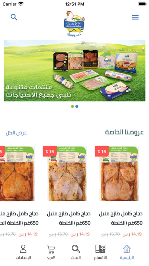 إن الدجاج الطازج يأتيكم فقط من مزارع رضوى السعودية.