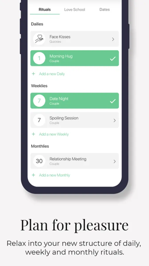Plan for pleasure - Build new habits and cultivate your connection through daily, weekly and monthly rituals.