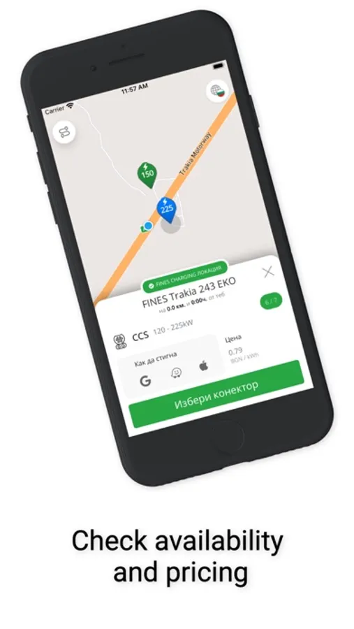 Fines Charging is the fastest EV charging network in Bulgaria. This app allows you to: