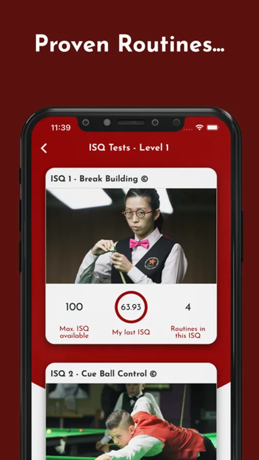 Players progress through routines as they improve their skills and move from Level 1 to a second, higher level of skill. In Level 2 they have the chance to compare to the elite players in the sport. All you need is your SQ - the very first global snooker handicap.