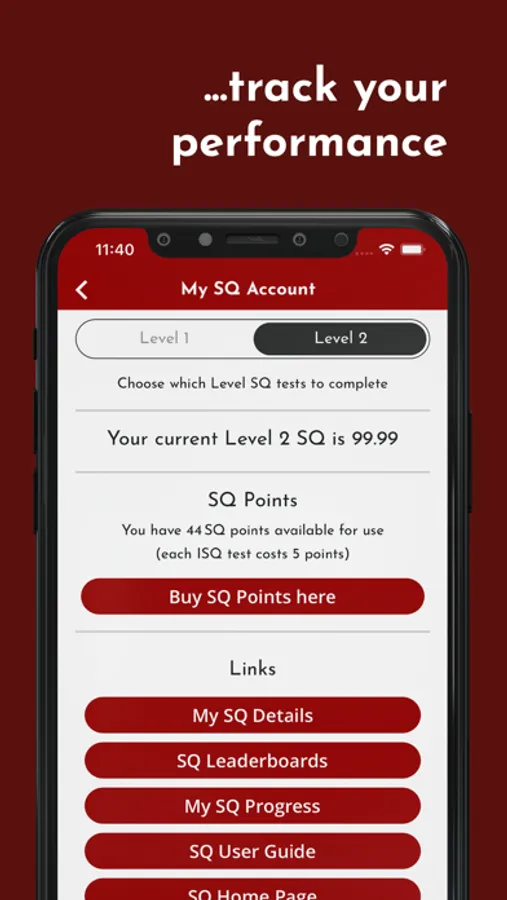 • Easy to use leaderboards for the 2 Levels will let you see just how your SQ compares