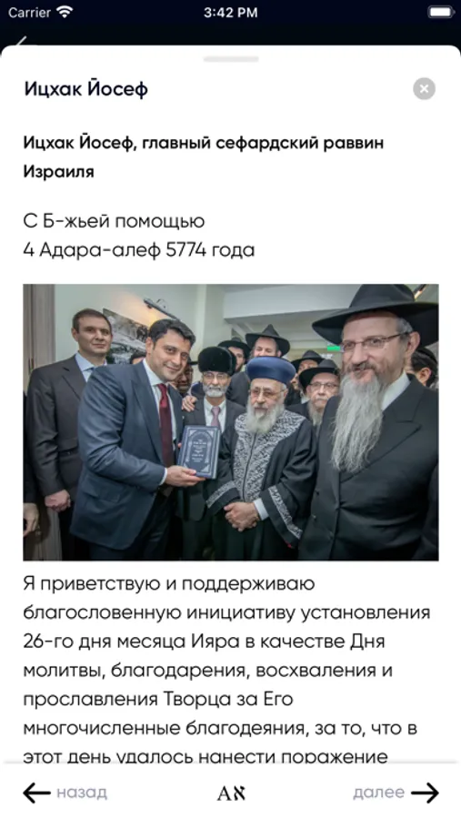 The 26th of Iyar is a new Jewish holiday dedicated to the miraculous salvation of the Jewish people in 1945 from the threat of total annihilation. This holiday was established on the initiative of a businessman and philanthropist German Zakharyaev with the blessing of prominent rabbis. The application contains a description of the holiday, the order of prayers and up-to-date information about its celebration in your city or country.