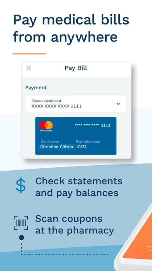 • Bill Pay - Never miss a medical bill; quickly and securely check statements and pay your outstanding bills from anywhere.