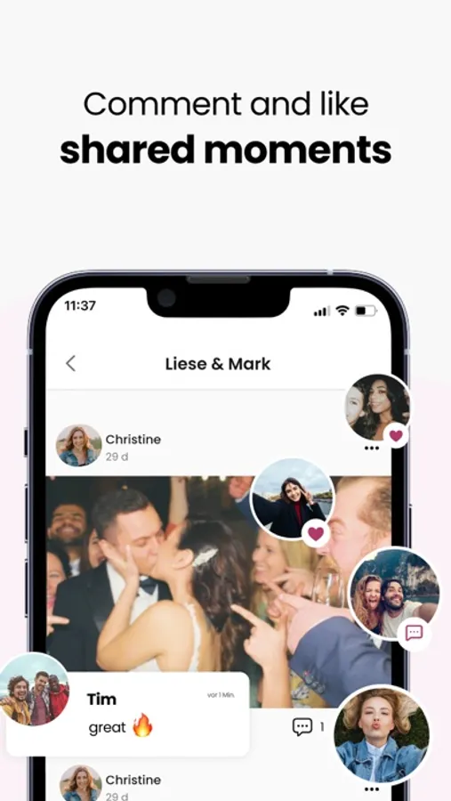 Discover the most amazing wedding photos in a beautiful feed and respond with likes & comments