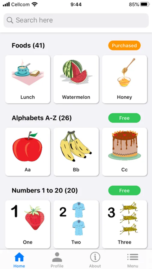 Educational Flashcards for preschool and elementary children ages 3 and up. Alphabet flashcards, numbers flashcards, and first words. Includes audio in American English.