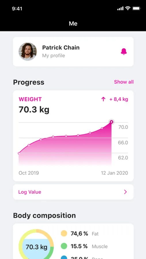 Verfolgen sie ihr Gewicht und andere Körperwerte