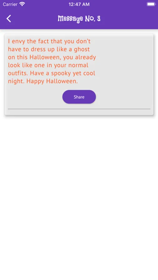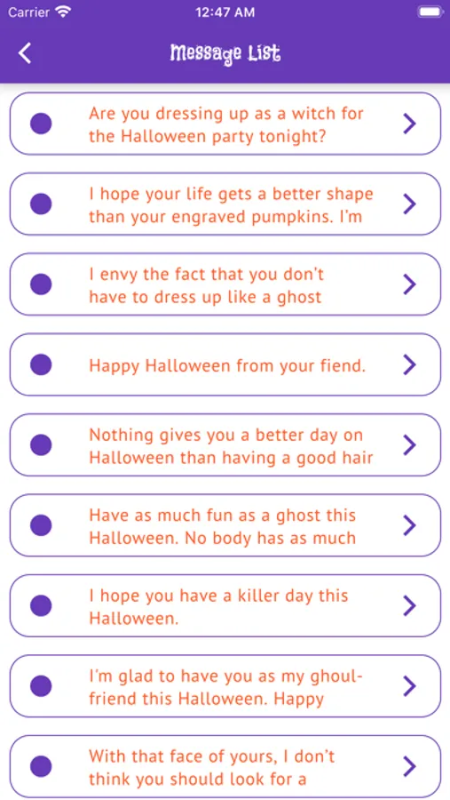 Very easy to use interface just scroll up and down to read the beautiful Halloween sms love msgs easy share to your friends.