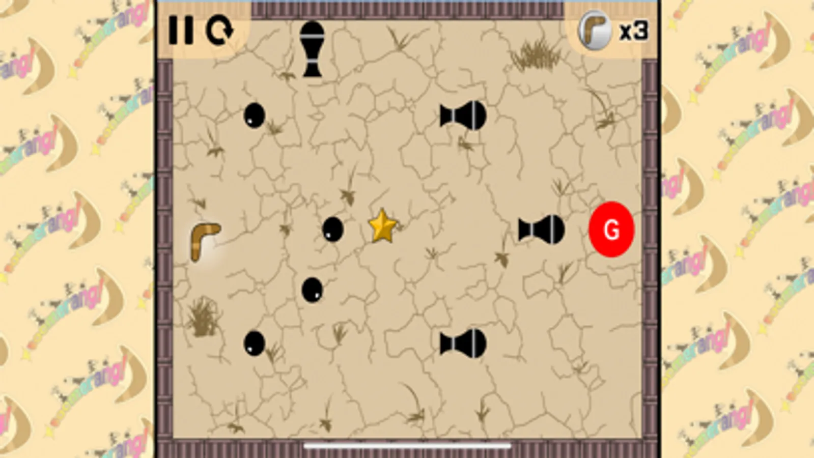 線を描いてブーメランをゴールに導こう、アクションパズル Boomerang!