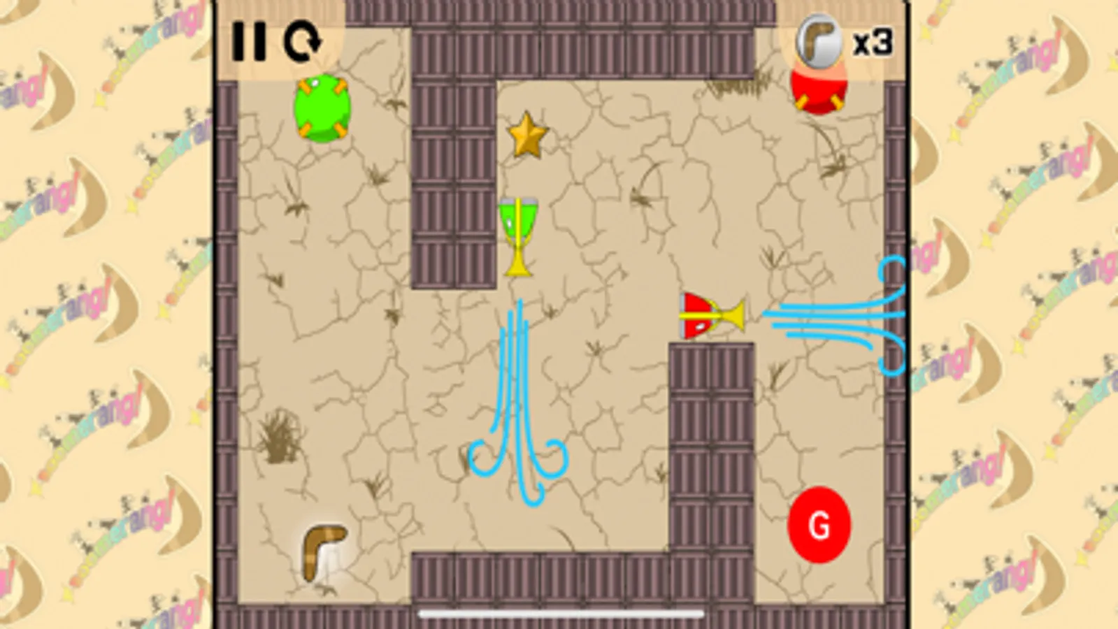 ◆ 線を描いてブーメランをゴールに導こう