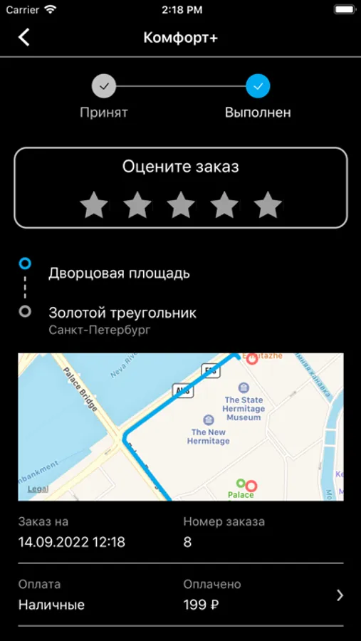 Пока исполнитель едет, вы будете видеть время прибытия, a также фото и его персональный рейтинг.