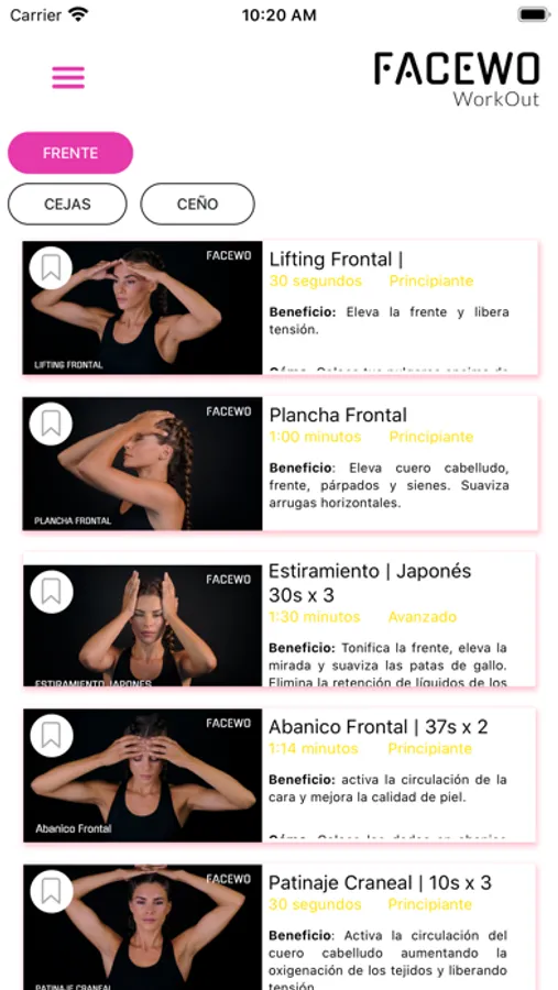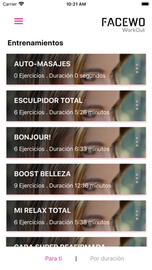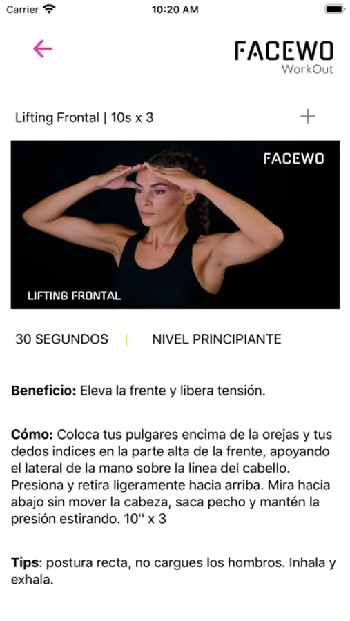 Suscríbete ahora al plan premium donde podrás encontrar todo tipo de entrenamiento facial que se ajuste a tus necesidades y objetivos para lucir mas joven y descansada.