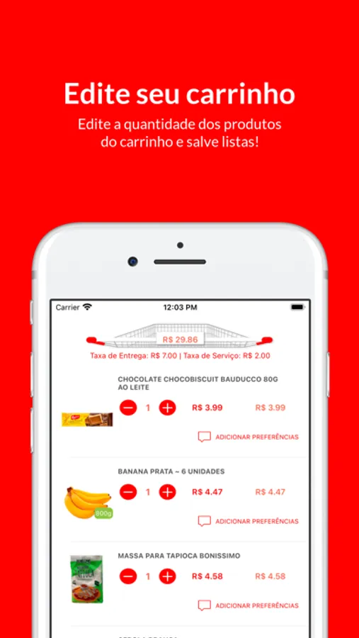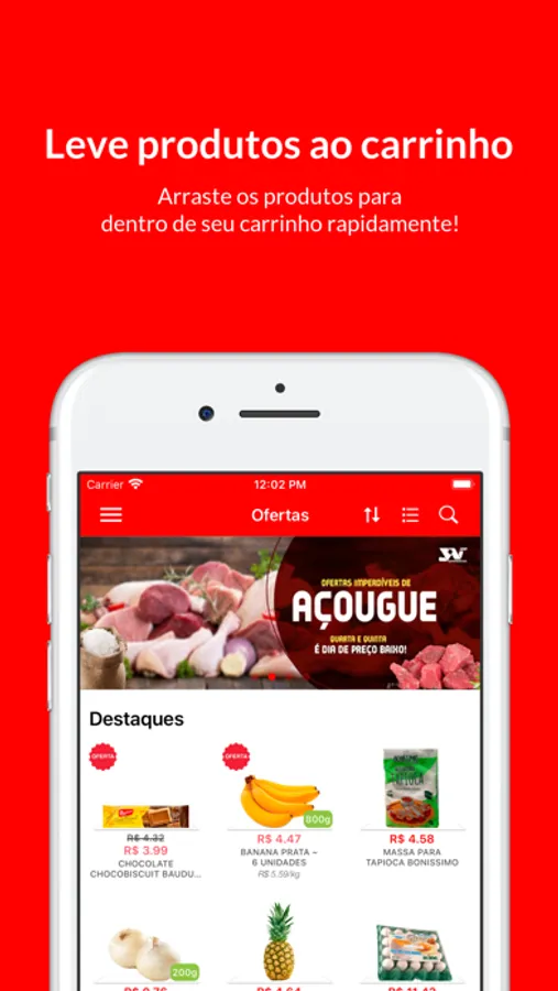 • Adicionar produtos no seu carrinho com um simples tocar e arrastar.