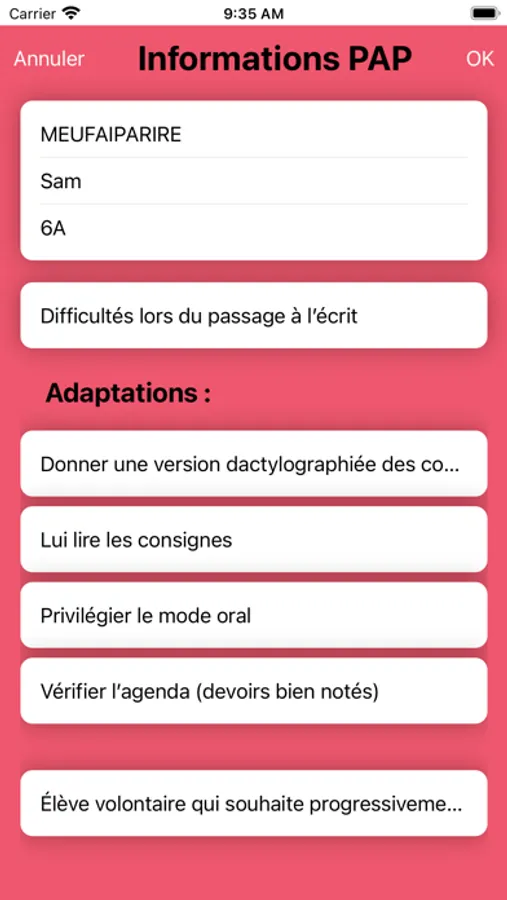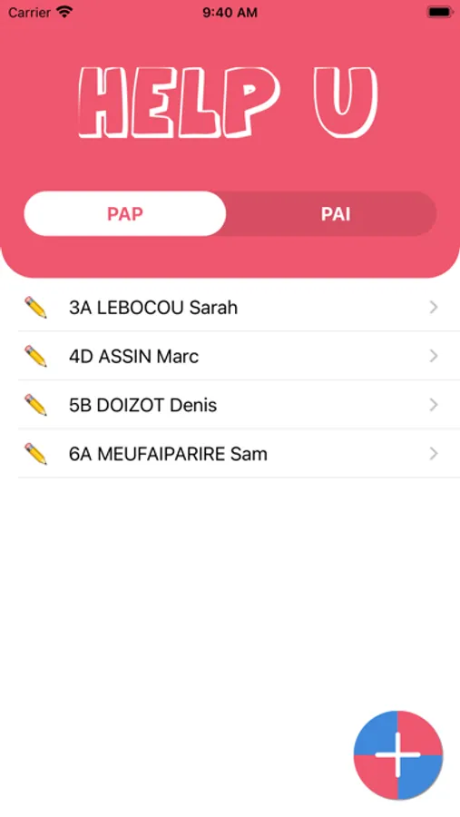Une liste pour les PAP et une pour les PAI. En un clic créez des fiches élèves, puis accédez aux données.