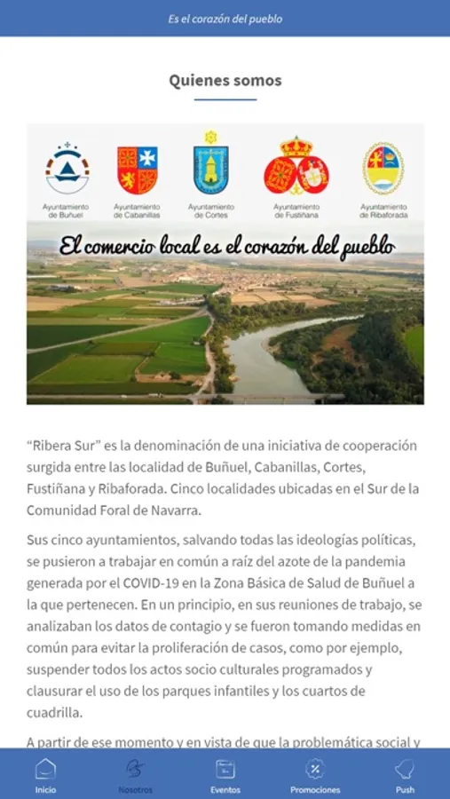Aquí encontrarás un amplio directorio con todos los comercios de las cinco localidades que conforman la Ribera Sur de Navarra: Buñuel, Cabanillas, Cortes, Fustiñana y Ribaforada. Ponte al día de sus descuentos, promociones y ofertas para que puedas escoger comprar en nuestro comercio local y favorecer la economía circular de toda la Ribera Sur. Además, te ofrecemos noticias, eventos culturales, información turística, etc. de las cinco localidades.
